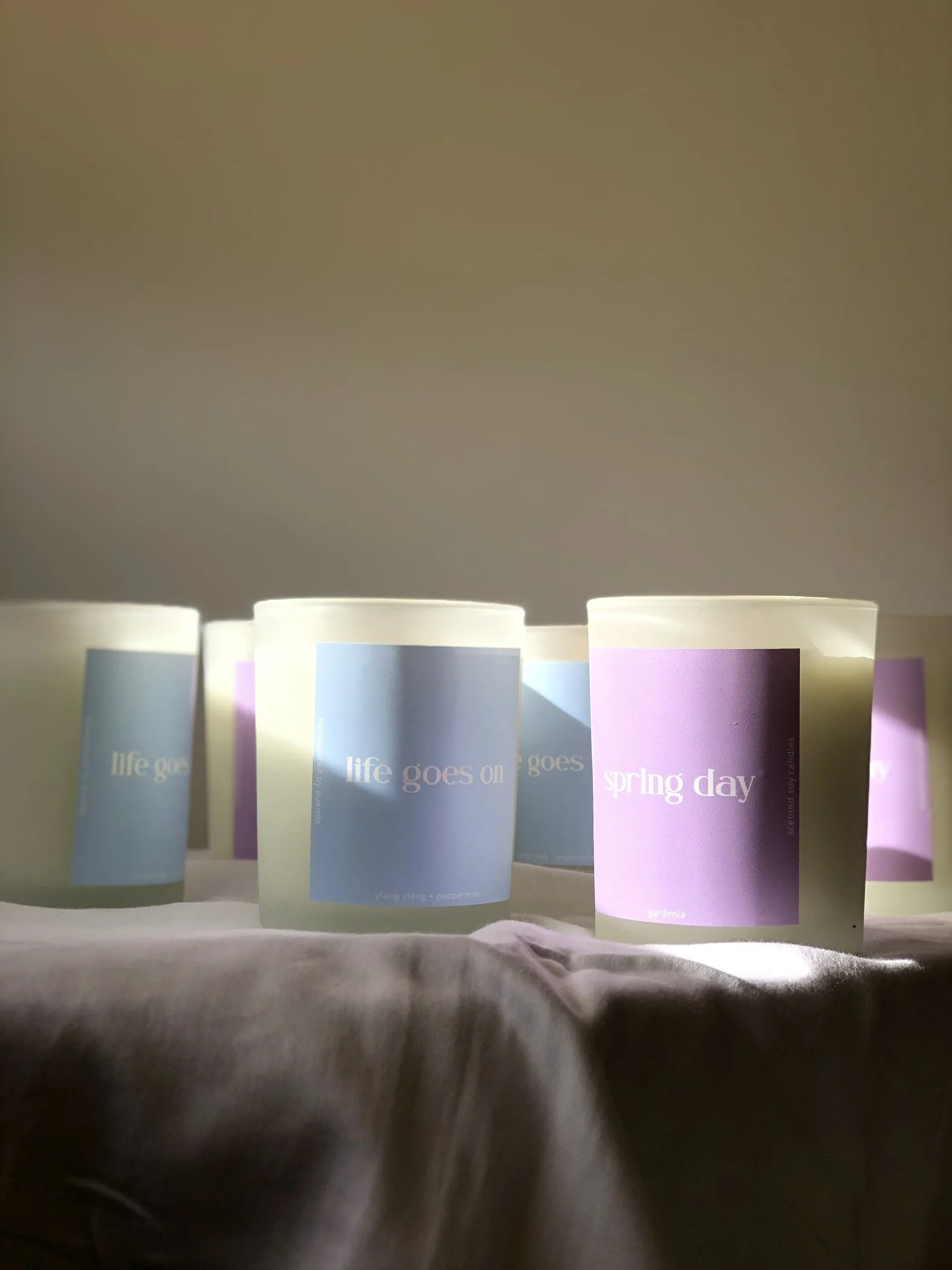 Arnaldo and Montilla, who are both K-pop fans, pay tribute to two of BTS' most loved tracks — "Spring Day" and "Life Goes On" — in one of their candle sets called Euphoria.