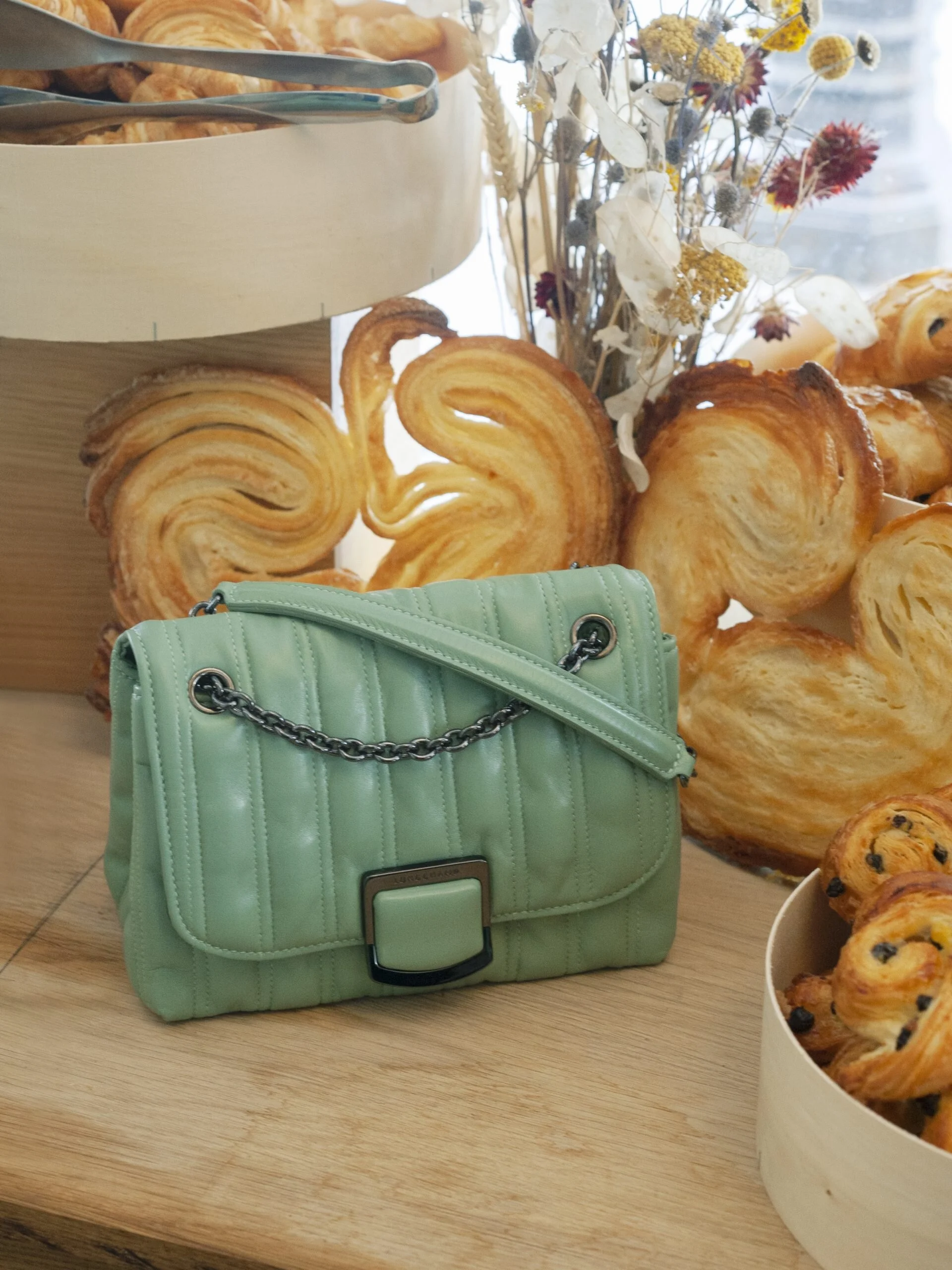 Infinitely soft and cozy, the Brioche can be slipped under the arm for an elegant and sophisticated look. It can also be worn over the shoulder or across the body, for a more casual style. The shoulder strap consists of a sliding chain, attached to both sides of the leather handle.The chain is adjustable, allowing you to walk in the city with your hands free.