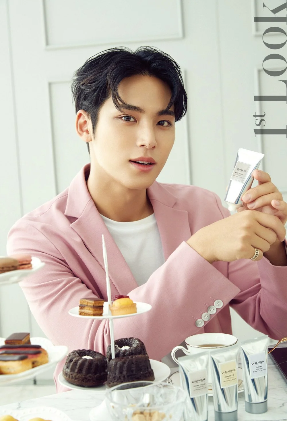 Mingyu of the group Seventeen just did a photo shoot for 1st Look magazine in collaboration with Laura Mercier Korea. In photos, Mingyu, who looks like a young CEO, is seen holding a Laura Mercier Flawless Lumière Radiance-Perfecting Cushion SPF 50/PA+++ in one photo and the Ambre Vanille Hand Cream, also from Laura Mercier, in another image.