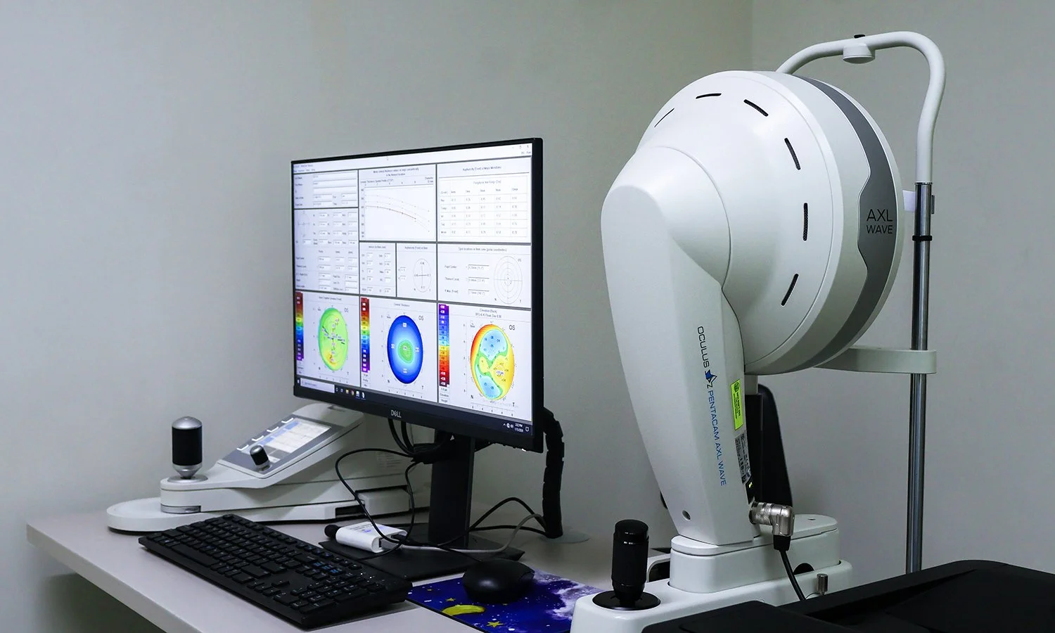 Before every procedure at FUMC, a thorough screening is conducted. The patient must be at least 18 years old to undergo Zeiss SMILE, as significant changes in vision are less likely afterward. Subjective refraction using the Nidek Index RT 6100 will document the presence or absence of cataracts. Nikon Optos California is used to rule out retinopathy or optic neuropathy. Lastly, a dry-eye test using a Pentacam ensures that the cornea is adequately thick and that no abnormally steep cornea (keratoconus) is present.